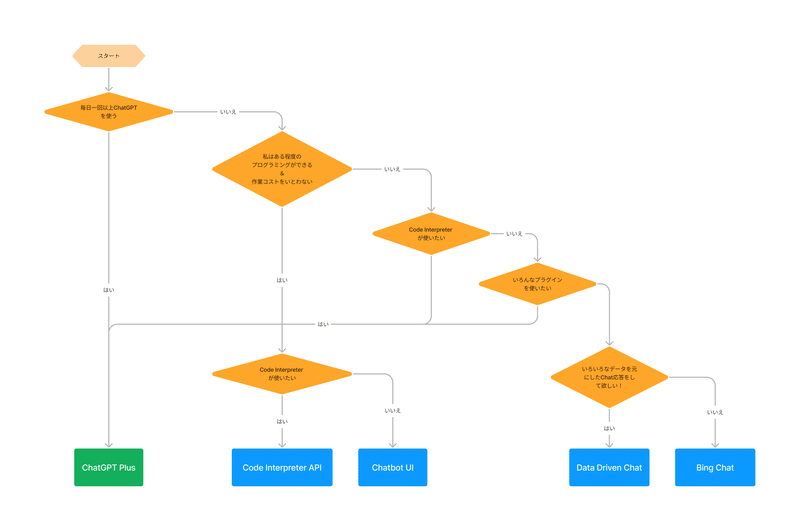 最後に、とてもざっくりとしたものとなっていますが、独断と偏見でフローチャートを作成してみました!(すこし複雑になってしまいました;;)